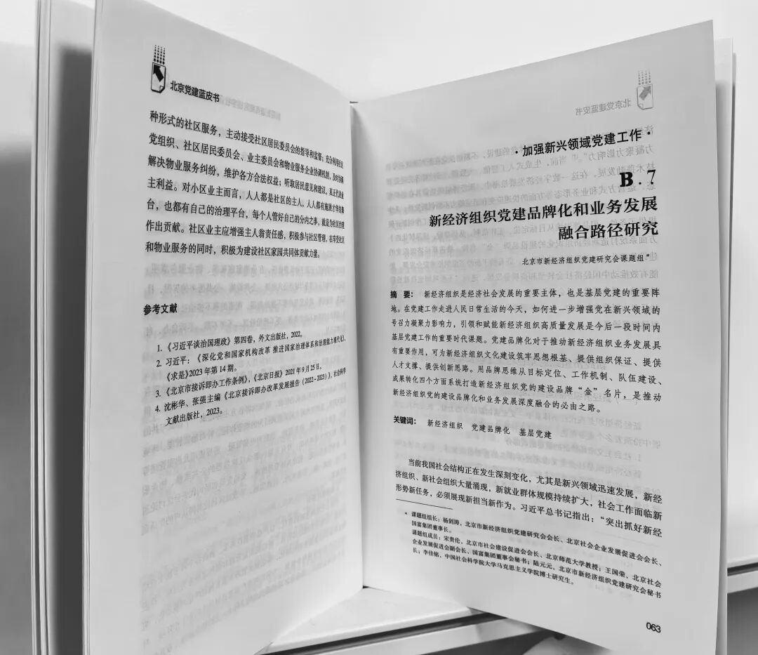 党建研究会关于加强新兴领域党建工作2024年课题:新经济组织党建品牌化和业务发展融合路径研究课题报告入选北京市党建的建设研究报告蓝皮书