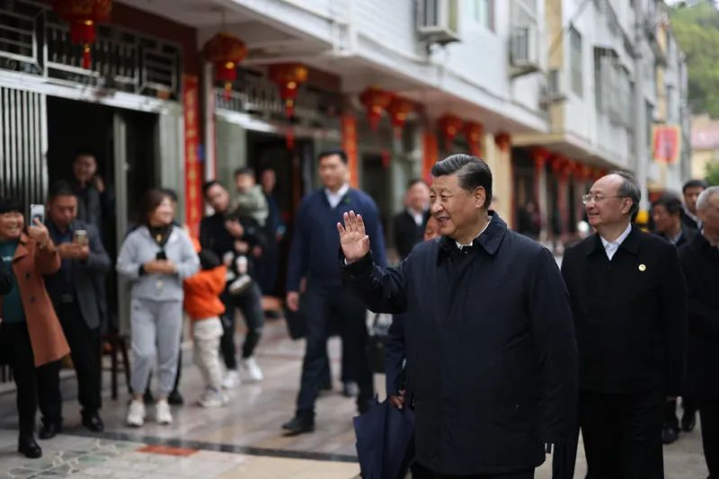 2021年3月22日至25日,习近平在福建考察。这是23日下午,习近平在三明沙县夏茂镇俞邦村考察时,向村民挥手致意。新华社记者 王晔 摄