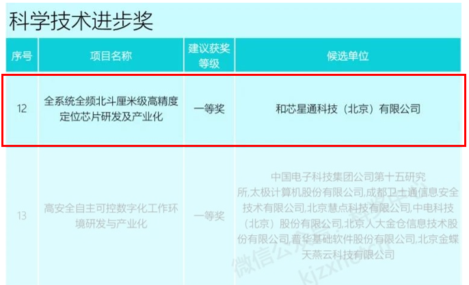 11月23日,《北京市人民政府关于2021年度北京市科学技术奖励的决定》正式公布。经市科学技术奖励评审委员会评审、市科学技术奖励委员会审定,北京市政府批准:授予北斗星通旗下企业和芯星通“全系统全频北斗厘米级高精度定位芯片研发及产业化”项目北京市科学技术进步一等奖。