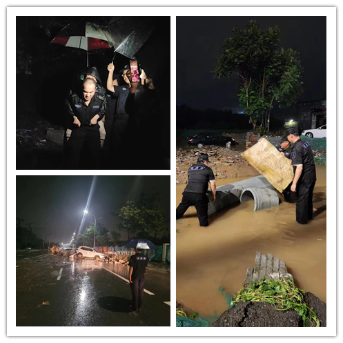 戎威远保安门头沟运营中心“闻汛而动”,在看好自己责任田的同时,在总部领导关于防汛抢险工作要求的精神指导下,紧急出动应急救援队全力协助门头沟永定镇进行抢险救灾,在暴雨中帮助受困人员脱离危险区域、疏通下水道、清理路面杂物、夜间执勤巡逻危险区域等,为防汛抢险贡献一份力量,彰显了戎威远人的军人品质、能打硬仗的工作作风。