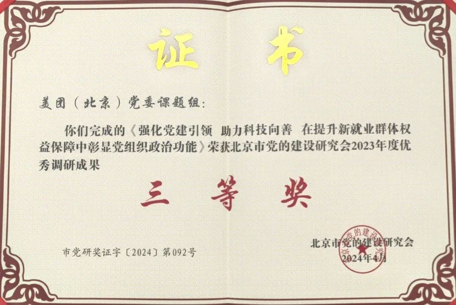 这一年,我们的课题研究进展顺利,取得不错的成果。我们精心编制印发课题研究指南,为会员单位党建研究提供了方向指引;成功申报“新经济组织党的建设品牌化和业务发展融合路径研究”课题并顺利结项;美团申报的课题荣膺优秀调研成果三等奖。
